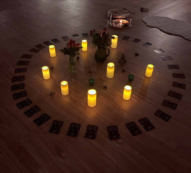 Där jag guidar i en läkande womb-meditation och där jag även går runt och ger healing.